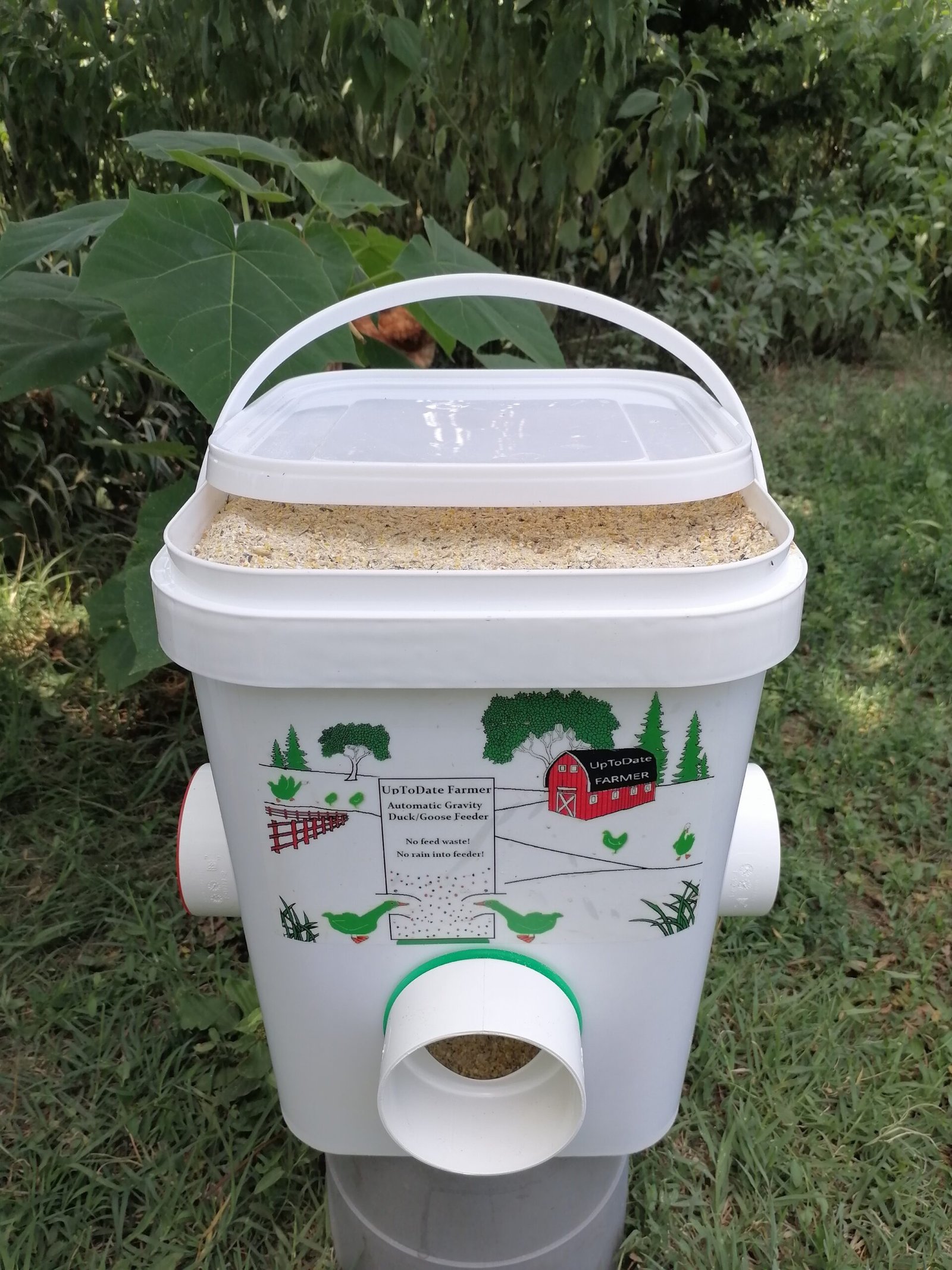 👍 Funziona con qualsiasi tipo di mangime per pollame: pellet, vermi della farina essiccati, mais misto, granaglie per pollame. Per anatre e oche funziona meglio con i cereali posizionando la mangiatoia a qualche metro dalla loro acqua in modo che non si bagni;